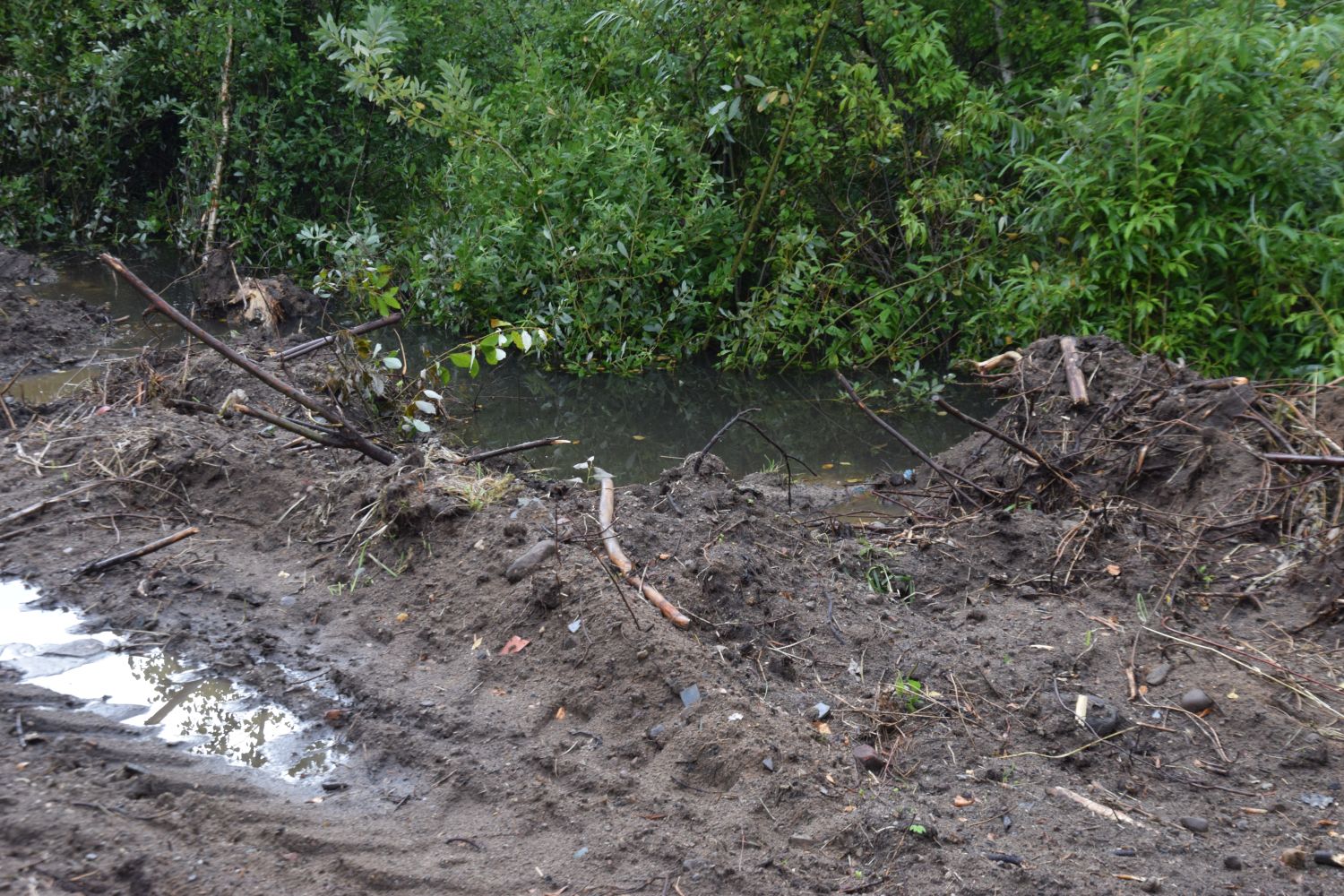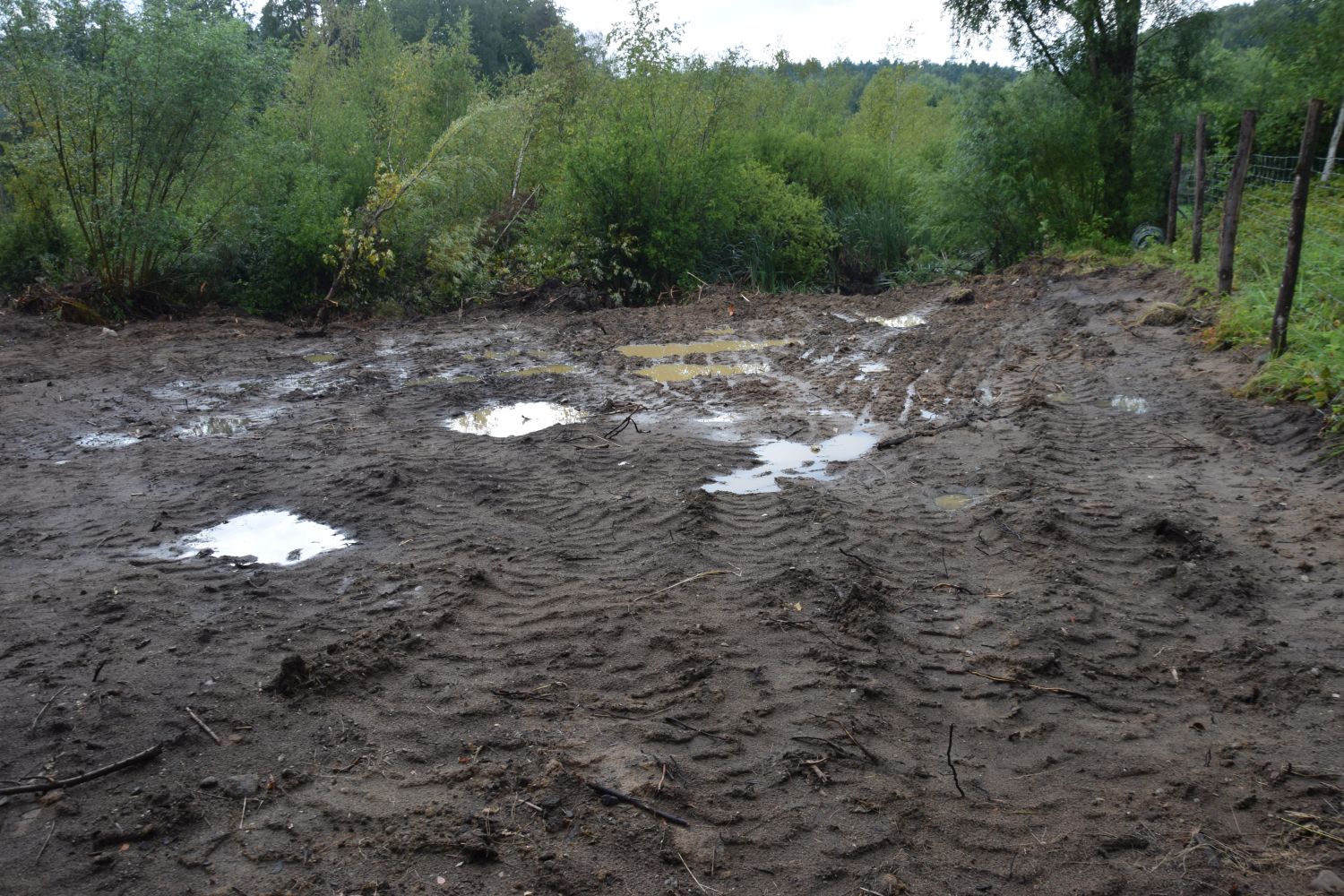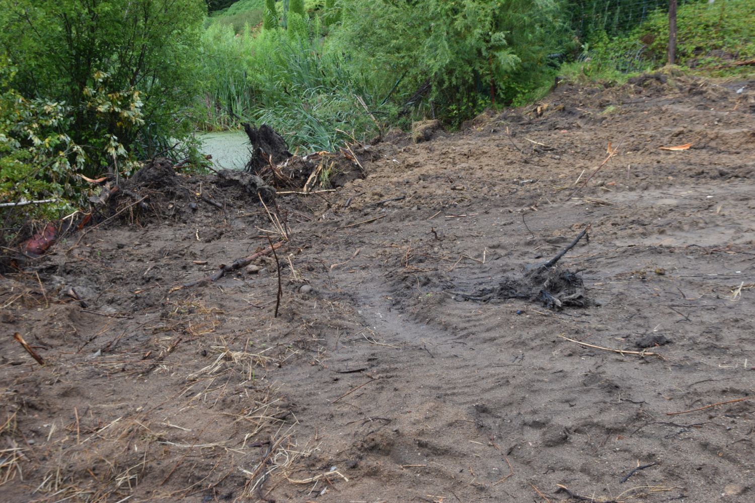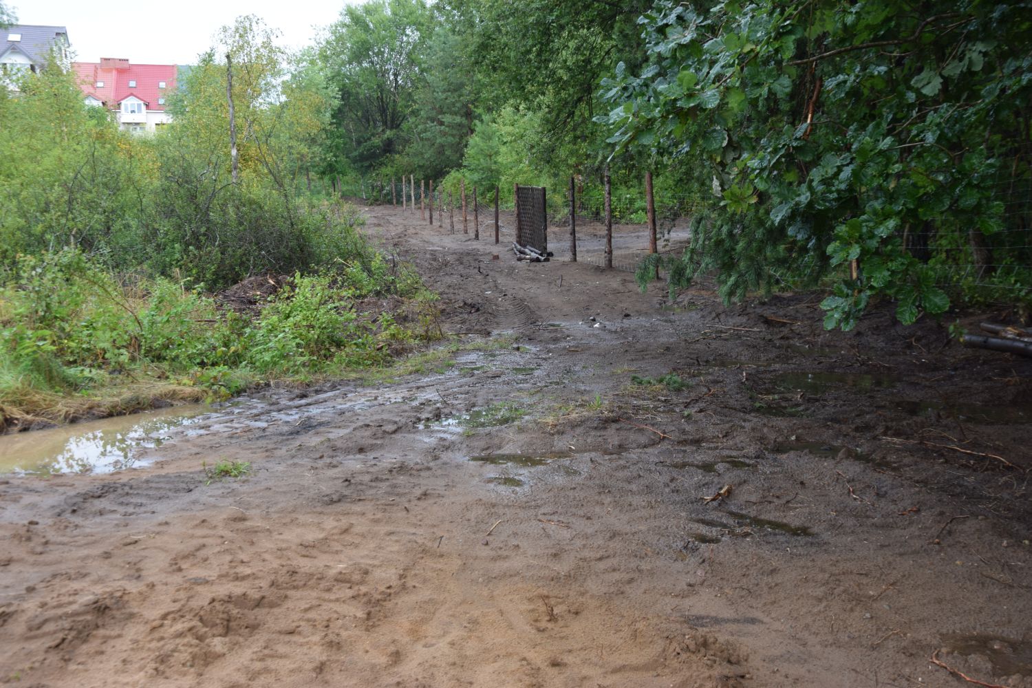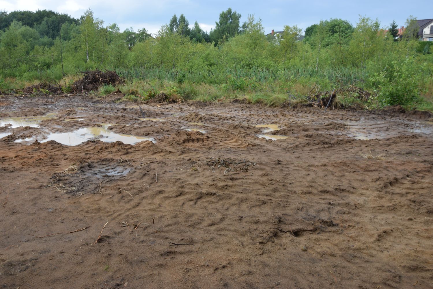 Na miejscu zrobiono zdjęcia. Rzeczywiście zastano tam “przeryty” buldożerami i zasypany urokliwy teren bagienny. Teren był ogrodzony siatką, nie było żadnej tablicy o prowadzonej budowie.