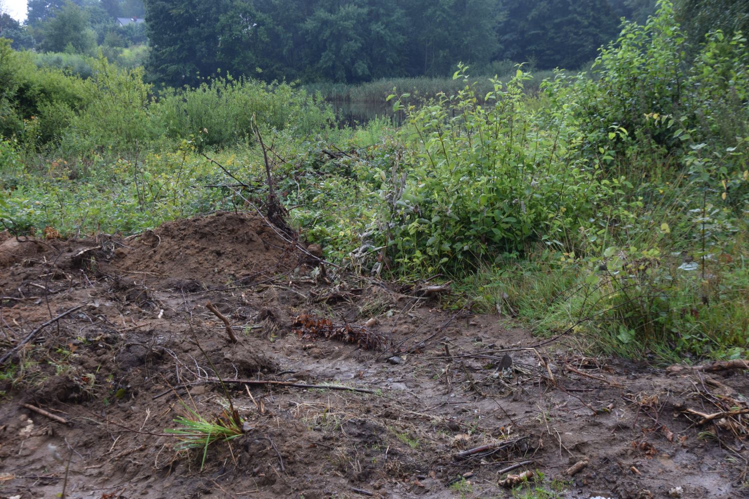 Sprawą zajęli się członkowie PKE OWP oraz mieszkańcy i mimo ulewnego deszczu pojechali na miejsce tej dewastacji przyrodniczej w Dąbrowie w Gdyni.