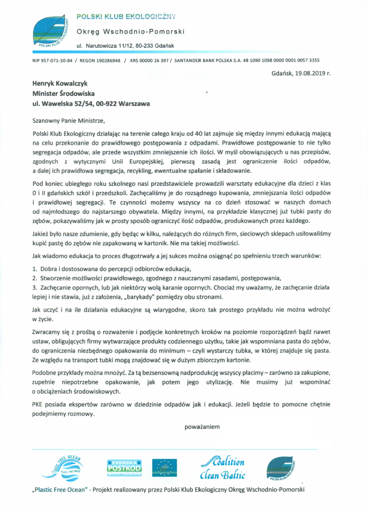 List do Ministra Środowiska
